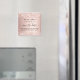 A modern and elegant Save the Date magnet for a wedding. A rose gold faux metallic looking background decorated with faux glitter dust. Personalize and add a date and names. The text: Save the Date is written with a large trendy hand lettered style script.