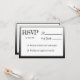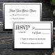 A simple, fun, modern RSVP card in black and white. On the front your guests can write the number of the guests and on the back they can pick their entrees.