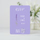 This trendy RSVP Cards in pinkish colours is the perfect match from the same collection. The design features classic lavender colour and modern typography mixed with elegant calligraphy . The card has a QR code that you can make by simply adding your wedding website address; you can use it for your wedding website or your wedding gift list.