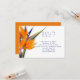 Bird of paradise wedding replay cards with option to respond using a wedding website. Beautiful orange bird of paradise flowers decorate simple, white RSVP cards with custom text in two places. Online reply for guests save the couple postage and makes things easy for guests.