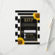Wedding RSVP Rustic Sunflower Black White Striped Card