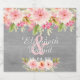 A rustic wine bottle label for a wedding or wedding anniversary. With contemporary pink, peach and coral coloured watercolored dahlia flowers. A rustic grey wooden wall as background. Templates for names and a date. The names is written with white hand lettered style script.