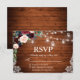 Wedding Rustic Wood Burgundy Blue Floral RSVP Card