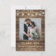 Your wedding photo is accented with a rustic, country, brown weathered wood plank background and soft yellow glow string lights and mason jar lanterns along with the editable title of THANK YOU and your wedding date in a country western hand-printed font and your names in a rough brush script font. The back of the card features another photo and offers the option to type a general thank you message (or delete the sample text to leave blank for personal handwritten notes of appreciation). PHOTO TIP: For fastest/best results, choose a photo with the subject in the middle and/or pre-crop it to a similar shape as shown BEFORE uploading. Contact the designer via Zazzle Chat or makeitaboutyoustore@gmail.com if you'd like any customization or want coordinating items.