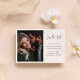 This design features a wedding save-the-date photo card with a modern minimalist calligraphy script with a blush floral simple design, and a QR code for website sharing and details.