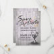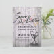 Save The Date Wedding Invitation Card Templates - Elegant Lettering Script, Vintage Champagne Glasses and String Lights on Rustic Wood Background.
