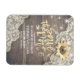 Wedding Save The Date Magnets Templates - Vintage Lace, Sunflower and String Lights on Rustic Wood Background.