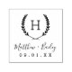 Create a monogrammed wedding stamp to personalize favours, welcome bags or stationery. Personalize the template with the bride and groom's names or monogram initials. Add your wedding date, the city, state or venue name or any other custom text. This modern rustic logo-style design has a laurel branch frame with your monogram initial. Use the design tools to add more text or edit the fonts and layout.