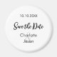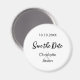 A Save the Date magnet for your wedding. A stylish white background, black text. Personalize and add your names and wedding date.