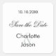 A Save the Date sticker for your wedding. A stylish white background, black text. Personalize and add your names and wedding date.