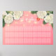 30 Tables Wedding Seating Chart Poster Templates - Elegant White lovely Watercolor Hydrangea Flowers and String Lights on Pink Gradient Background.