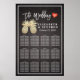 12 Tables Wedding Seating Chart Poster Templates - Elegant Faux Gold Foil Pineapple Couple on Black Floral Damask Linen Background.