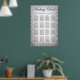 Custom wedding seating chart with a silver glitter look. Elegant and charming planner for table seating arrangements and groups.