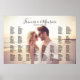 Elegant wedding seating chart featuring a simple design with your names in over your favourite photo. Just edit the tables and names. Available in printed format or as downloadable file.
