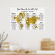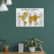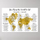 World Map Seating Chart. With countries for table names. Gold Watercolor World Map.