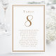 Our trendy wedding table number guest list features a template for the table number & list of guests at the table. Personalize elegant lettering and script with your guest's names & details in rustic brown on a crisp white background. Perfect addition for a wedding, anniversary or large engagement party. The reverse side is a duplicate of the front allowing for easy viewing from both sides. Custom colour request accepted.