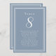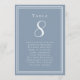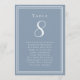 Our trendy wedding table number guest list features a template for the table number & list of guests at the table. Personalize elegant lettering and script with your guest's names & details in crisp white on a trendy dusty blue background. Perfect addition for a wedding, anniversary or large engagement party. The reverse side is a duplicate of the front allowing for easy viewing from both sides. Custom colour request accepted.