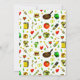 Kitchen-themed design, featuring cooking utensils, bride and groom wedding rings, and colourful food.