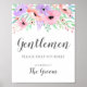 Wedding men's bathroom basket sign in pink watercolor floral design and modern calligraphy.