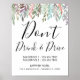 Rustic Don't Drink and Drive wedding sign in rustic watercolor greenery design and modern calligraphy.