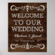 Rustic Welcome to Our Wedding sign in wooden background pattern.
