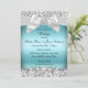 Wedding Silver Blue Glitter Jewel Bow Invitation