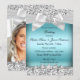 Wedding Silver & Blue Party Invitation. Pretty Silver glitter & diamond jewel bow. Please note: All flat images!