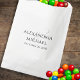 A simple minimalist treat favours a wedding reception bag. This design features wedding favour simple elegant template, minimalist calligraphy ampersand names, classic fancy script typography, reception thank you treat, cookie candy bar takes one, elegant reception treat traditional, pet candy favour doggie bag, rehearsal dinner cookies take home, classy whimsical vintage, wedding favour treat bag template