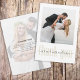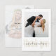 This design features a simple two-photo wedding gold thank you card, wedding marriage announcement cards, modern thank you calligraphy, elegant wedding typography calligraphy, simple trendy modern minimalist, wedding photo portrait picture script, hand-lettered cool gold, bride groom multi photo, a 2 two photo budget postcard, stylish fancy script font text