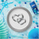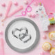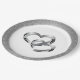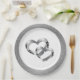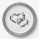 Wedding party paper plate shown in a Silver faux glitter print around the rim with a two hearts print design in the centre.