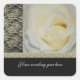 A single white rose bordered by delicate floral lace and a textured border set against a black background. This design is perfect for sealing wedding invitation envelopes, for florists to stick on the cellophane wrap they place around bouquets of flowers or for any business dealing in the hospitality industry. The sheets have an easy to peel off back and there are 20 on a sheet. As it is fully customisable, you may add your own wording, images and/or logo to the design. For our full range of matching products in this line, click on the rowood link on this page, followed by the "Weddings" category. ©Robin Wood - rowood. All rights reserved.