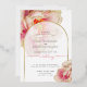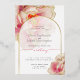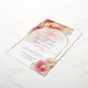 WEDDING | Modern text fits nicely inside this beautiful sheer white gold edged arch frame that shows the underlying fantasy coral rose peony flower edged in gold - original artwork © by WhimsicalArtwork™.