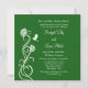 Succulents are one of the newest trends in wedding floral design. These exotic plants adorn a swirling vine, that subtly enhances the type on this dark green wedding invitation.