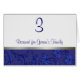 Elegant blue and white wedding table number tent card. A lovely blue on blue Fleur damask design on the bottom edged with a silver tone stripe, text area is white. Personalize the blue text to the table numbers you need and any special reserved seating, or add the name of the bride and groom in it's place. Matching wedding products available.