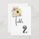 This wedding table number card is shown in the matte card paper with a modern layout and lovely flowers.