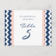 Wedding Table Number Cards Coral Blue Chevron