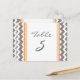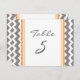Elegant and modern tangerine orange, dark charcoal grey and white wedding table number cards with retro and fun chevron zigzags pattern. Customize these cards to create custom table number cards for each table at your wedding. Pattern available in a wide range of matching wedding products.