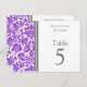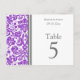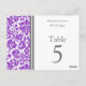 Elegant and modern bright purple, grey and white wedding table number cards with chic and classic floral damask vintage pattern. Customize these cards to create custom table number cards for each table at your wedding. Add your names and wedding date. Pattern available in a wide range of matching wedding products.