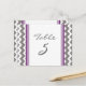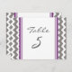Elegant and modern dark eggplant purple, dark charcoal grey and white wedding table number cards with retro and fun chevron zigzags pattern. Customize these cards to create custom table number cards for each table at your wedding. Pattern available in a wide range of matching wedding products.