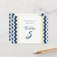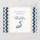 Elegant and modern bright lemon yellow, dark navy blue and white wedding table number cards with fun retro chevron zigzags stripes pattern. Customize these cards to create custom table number cards for each table at your wedding. Add your names and wedding date. Pattern available in a wide range of matching wedding products.