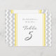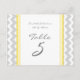 Elegant and modern bright lemon yellow, grey and white wedding table number cards with fun retro chevron zigzags pattern. Customize these cards to create custom table number cards for each table at your wedding. Add your names and wedding date. Pattern available in a wide range of matching wedding products.