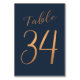 Faux copper metallic gold foil formal calligraphy script wedding reception table card. The dark navy blue background colour is editable. You can change it after pushing CUSTOMIZE button.