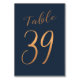 Faux copper metallic gold foil formal calligraphy script wedding reception table card. The dark midnight blue background colour is editable. You can change it after pushing CUSTOMIZE button.