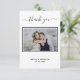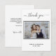 An elegant and modern Thank You card, personalized with your own photo. Add Your photo, the wedding date, your names and the thank you note. A trendy black and white card. The text: Thank you on the front and your names on the back are written with a stylish hand lettered script.