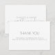Simple typography wedding thank you with text message on the front and couple name in script on the back of the note card.