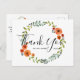 Classic wedding thank you post card template features a floral wreath on the front, and a customizable message at the back. You can personalize it with the customize it button. Send out your wedding thank you message as newly weds to your friends and family using this beautifully, simple thank you wedding photo postcard with the words "thank you" written in a white handwriting script text overlay.