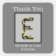 Personalize your wedding thank you cards or favour bags with this elegant letter E monogram. The large initial E features colours of gold and black in a vintage antique style. This letter appears within a light grey square outlined in black. The words "thank you" along with the bride and groom's names appear around the monogram. Quickly and easily change the words of appreciation and the names.