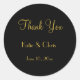 A wedding thank you sticker in an elegant gold font accented with a black background makes this thank you gift chic and classy.