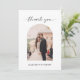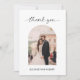 Minimal script photo wedding thank you card with personalized message on the back.