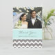 Wedding custom photo thank you for the gift cards in elegant light turquoise blue, charcoal grey, and white modern and fun chevron zigzags pattern. Fully customizable, two sided, available in many matching products for all your wedding or party needs. Contact us to request a colour change or custom design.
